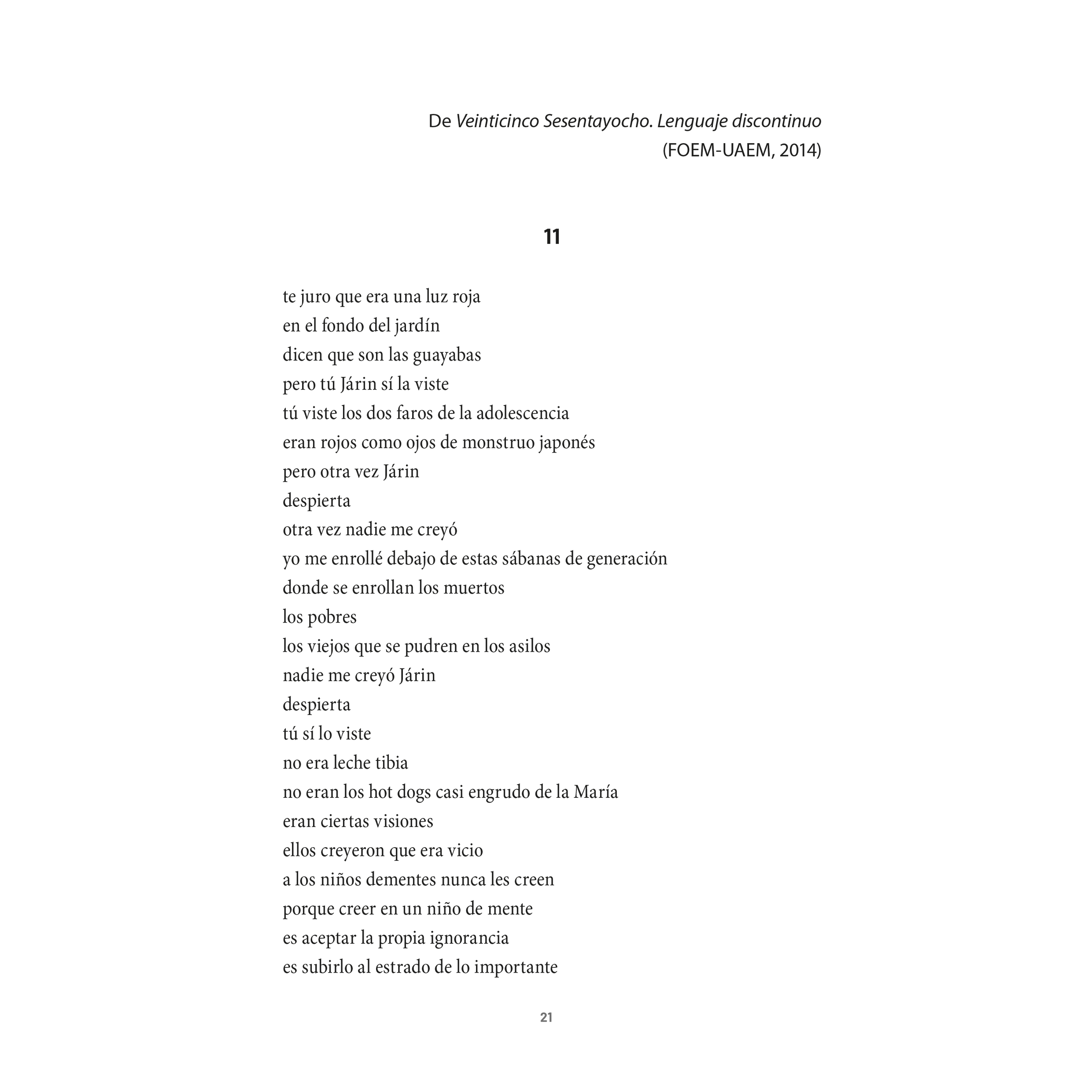 Una muestra de nueve poetas de Argentina y nueve de México en una alineación de propuestas diversas y divergentes que, más que oponerse entre sí, se acompañan, o mejor aún, establecen un juego de correspondencias. Habría que celebrar el gran interés de los editores de Gambito de Papel y Comma Ediciones no sólo por su visitación de poéticas con una singularidad a ultranza en estos dos países —cuando menos—, sino además por su apertura a registros de tesituras muchas veces contrarias entre sí, tanto en su tratamiento del lenguaje como en su perspectiva de mundo. Los hallazgos no se han hecho esperar, de manera que lo que más tienen en común quienes conforman este volumen es la diferencia…